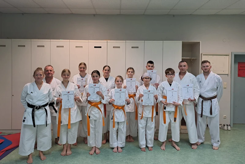 Alle zehn Prüflinge absolvierten erfolgreich ihre Aufgaben und bestanden die Kyu-Prüfung mit Bravour. Die Prüfer Oxana und Vikor waren mit der gezeigten Leistungsbereitschaft sehr zufrieden und gaben Empfehlungen für die kommenden Trainingsschwerpunkte. Die neuen Kyu-Träger werden mit Sicherheit die nächsten Trainings nutzen, um das Erreichte zu festigen und sich auf zukünftige Prüfungen vorzubereiten.
