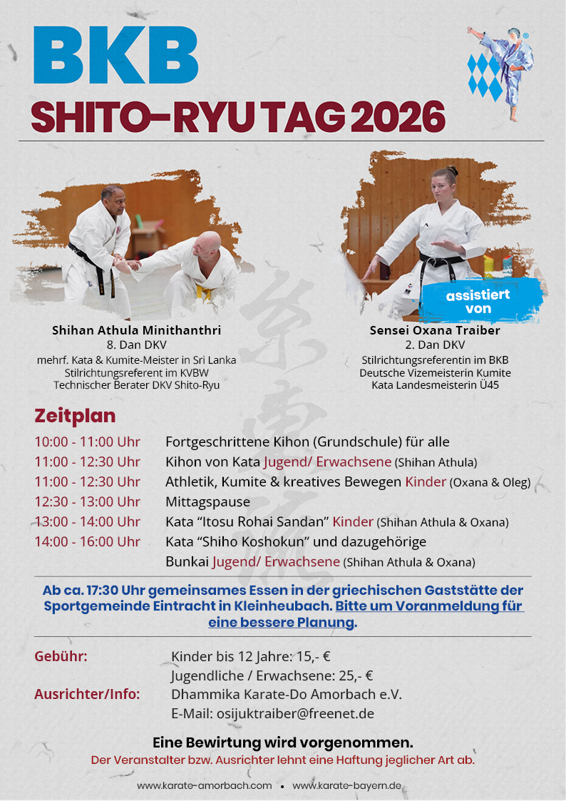 Anmeldung erforderlich unter dhammika.karate.amorbach // ätt // gmail.com oder osijuktraiber // ätt // freenet.de