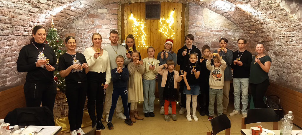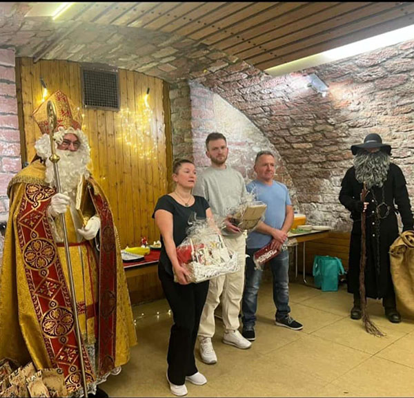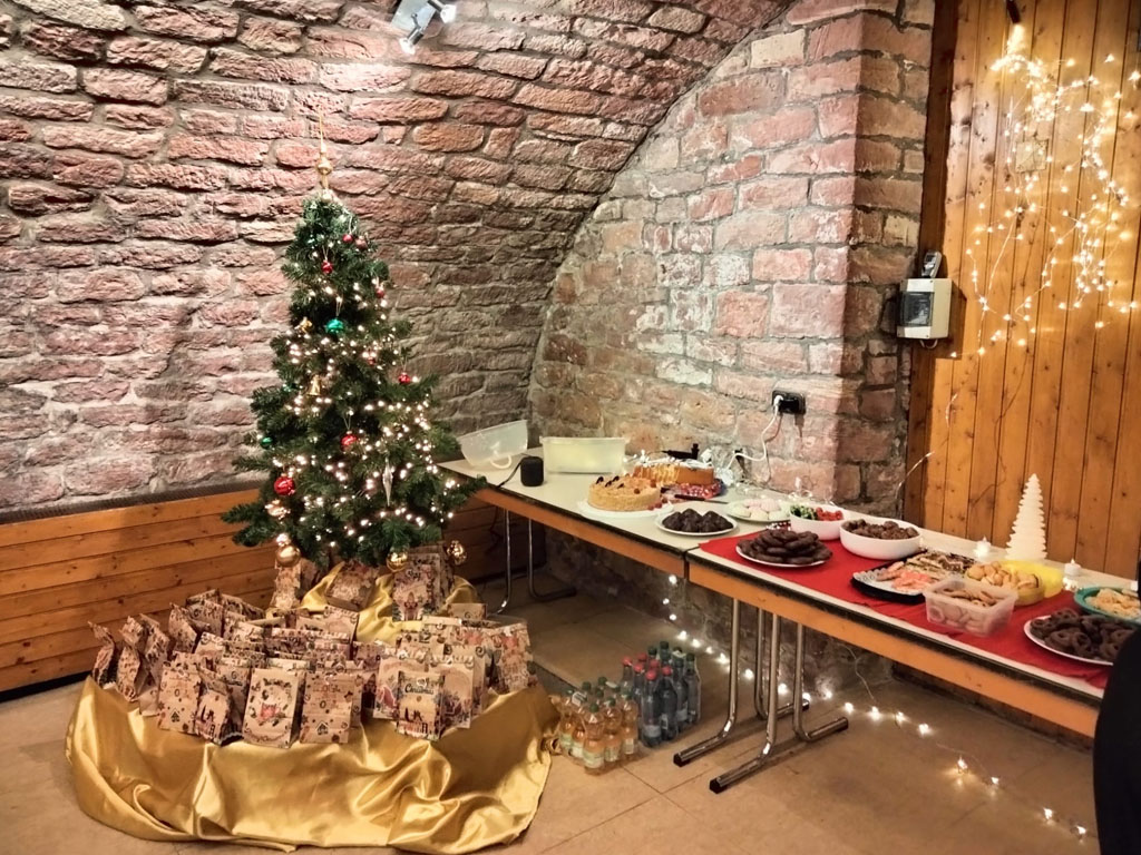 An der Weihnachtsfeier nahmen mehr als 50 Kinder teil und füllten den Abend mit Leben. Auch Nikolaus und Ruprecht waren da und präsentierten den Jahresbericht. Im Laufe des Abends trugen die Kinder im Gewölbekeller Gedichte vor und sangen wunderschöne Lieder. Sie spielten auch auf ihren mitgebrachten Musikinstrumenten, wie Gitarre, Flöte und Keyboard, verschiedene Stücke und lasen Weihnachtsgeschichten vor.